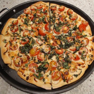 Now the real fun begins: add the toppings of your choice and bake until the crust edges are golden (approx. 12-14 minutes).