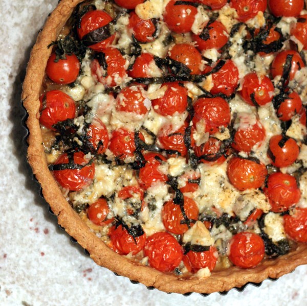 We have more cherry tomatoes than we know what to do with this year. I usually prefer to eat them like candy, right off the vine, but with all the rain we had in July, the tomatoes are a bit more watery than usual. So, I’ve taken to roasting them instead – a delicious consolation prize. This tart was inspired by the recipe at La Tartine Gourmande. Instead of tartlets, I used a single 9” tart pan and increased the baking time to 40 minutes.