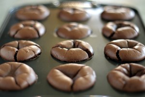 - Bake for 25 minutes or until the cheesecakes are firm to the touch. (They will puff up above the top of the pan and probably crack. Don’t fret, they will sink as they cool, and the ganache will hide any and all imperfections.)