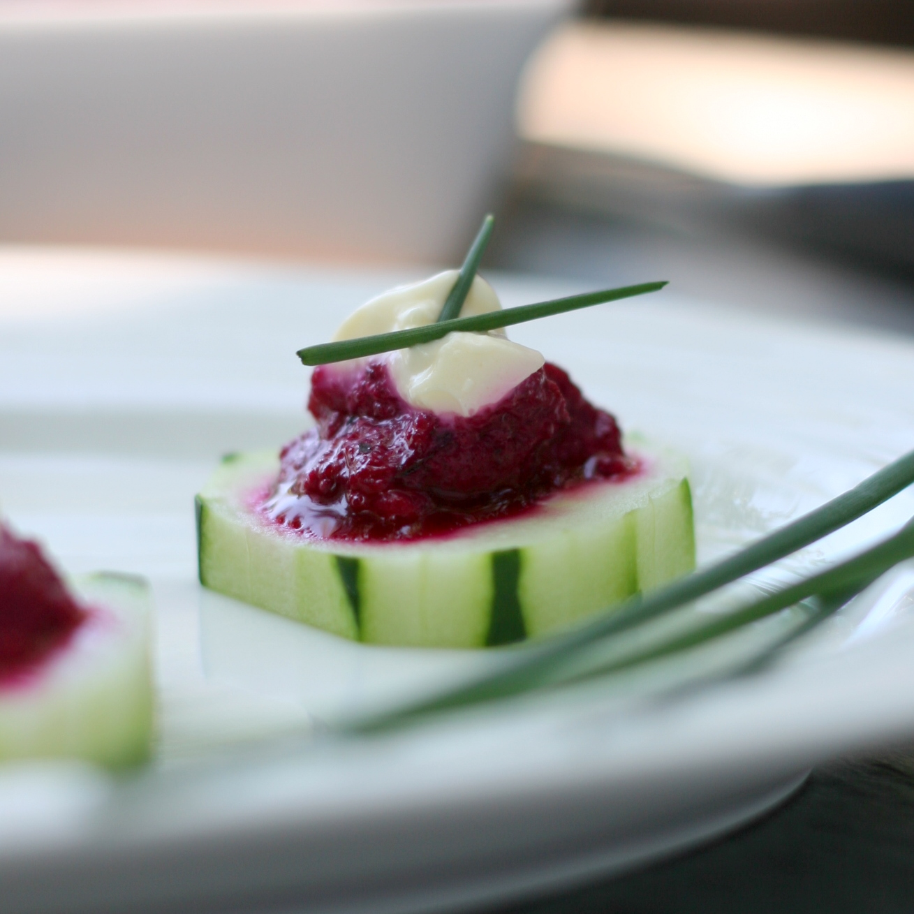 - Enjoy the purée alongside some salmon or your favorite egg dish, with slices of toasted pita, or my favorite way (pictured above) — perched on top of fresh sliced cucumber and finished with crème fraîche and chives. It’s summertime in a single bite.