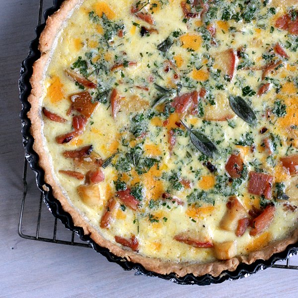 Sweet velvety apples + assertive tangy cheddar + salty ham + rich custard.
