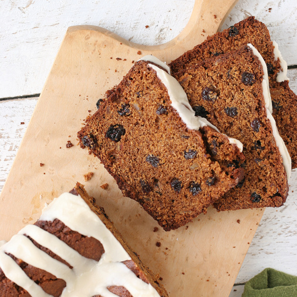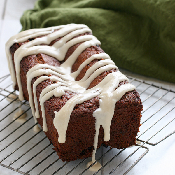 The pronounced sweetness in this “bread” pushes it closer to the cake category though with half the fat of most cakes. None of the recipes I found suggested a frosting, but the dry crumb of this intensely flavored bread-cake called for a little something creamy. If you’re not a fan of whiskey, substitute orange juice and double the amount of vanilla extract. Or skip the frosting and slather it with some Kerrygold butter instead. Éirinn go brách!