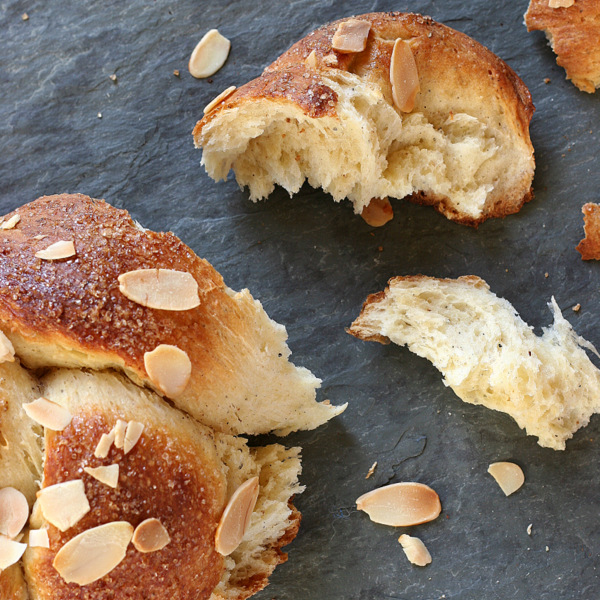 Lately, I’ve been experimenting with no-knead egg breads with some exciting results. I don’t mind labor-intensive baked goods especially for delicious, once-a-year, holiday treats, but I know plenty of people who think this fact alone makes me crazy. This pretty, little, no-knead Pulla, adapted from Hugh Fearnley-Whittingstall’s recipe at The Guardian, is my testament that bread making can be easy and even fun. It requires just twenty minutes of active time–the yeast does the real work.